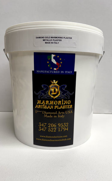 DIAMOND GOLD MARMORINO PLASTER is a wall finishing metallic plaster made from finely filtered seasoned slacked lime, natural inert charges, special additives, and fine powder metal.